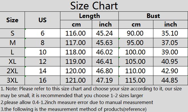 | 1. Note: Please refer to this size chart and choose your size according to it, our size may be small, it is recommended that you choose 1-2 sizes larger 2.please allow 0.4-1.2inch measure error due to manual measurement 3.the following is the measurement method of products(reference) | |||||