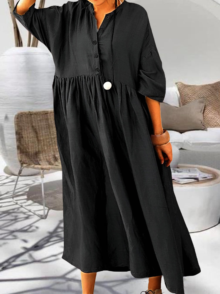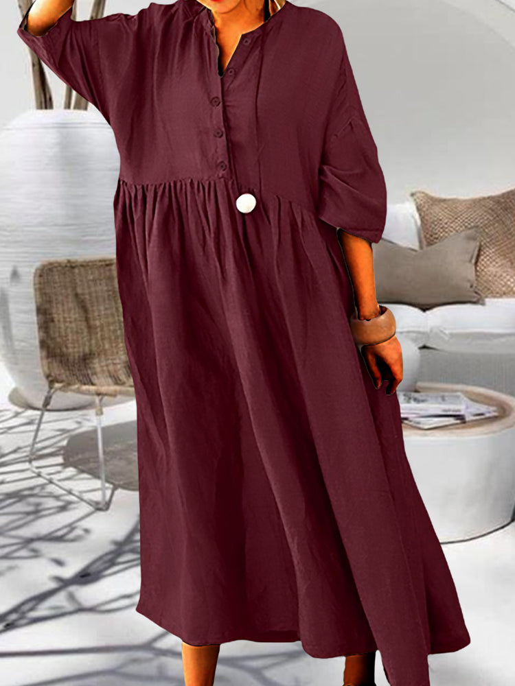 Describe-Cotton And Linen Loose Plus Size Irregular Dress