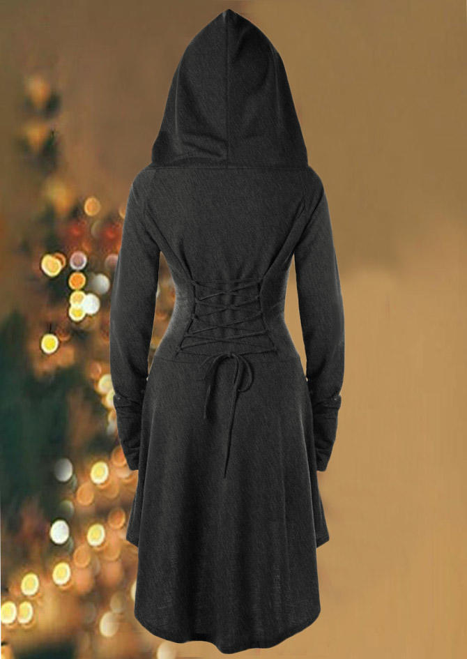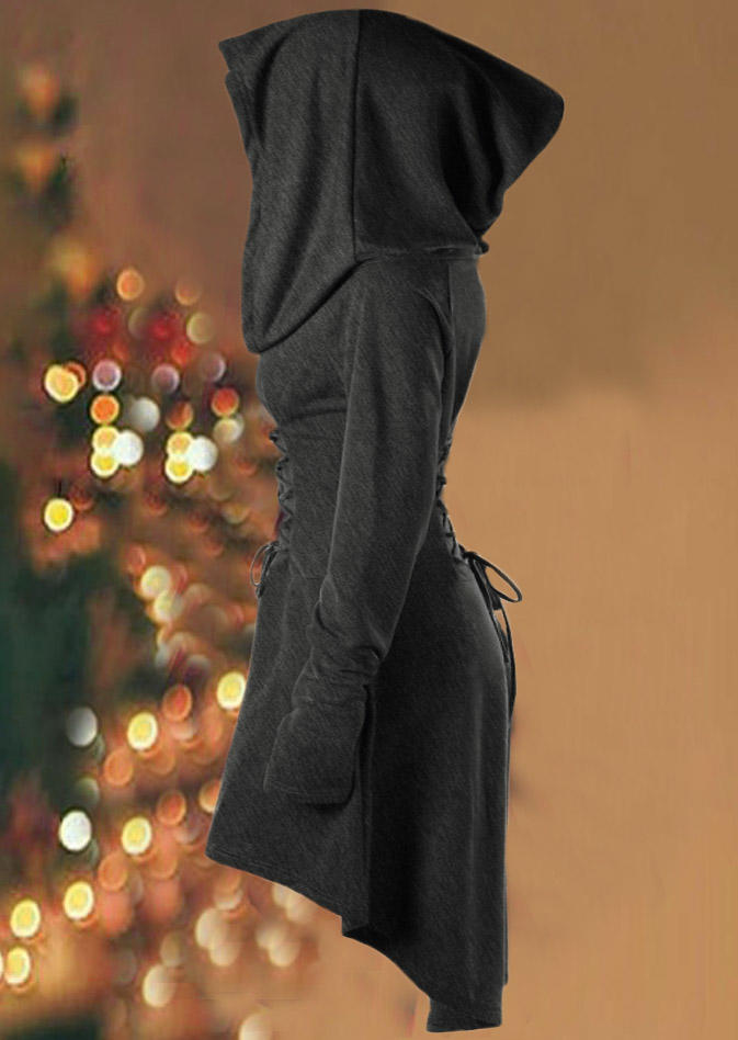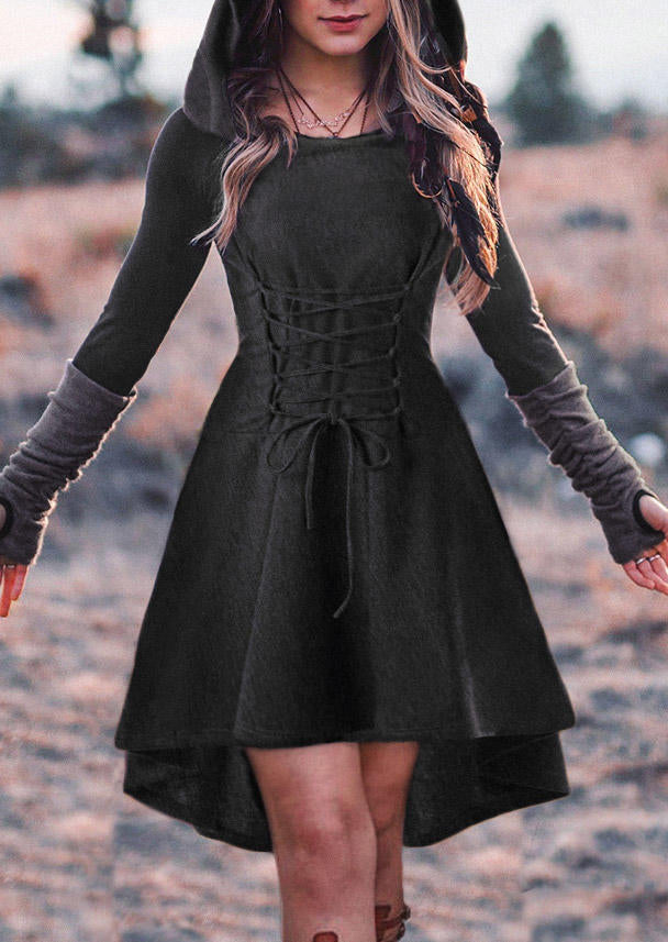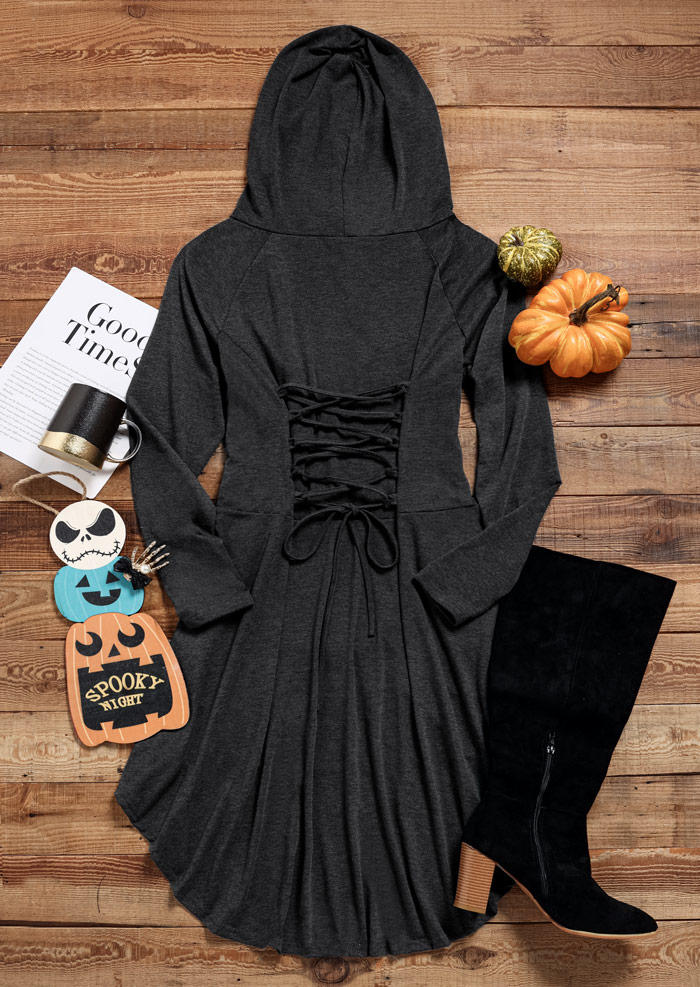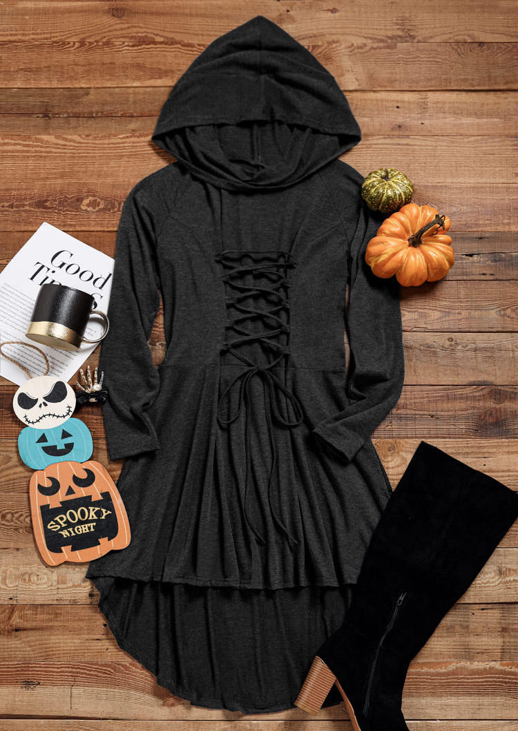 Halloween Lace Up Thumbhole Hooded High Low Hem Mini Dress - Gray