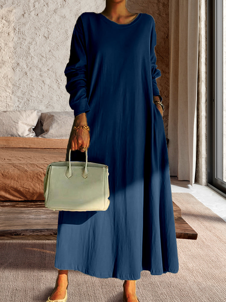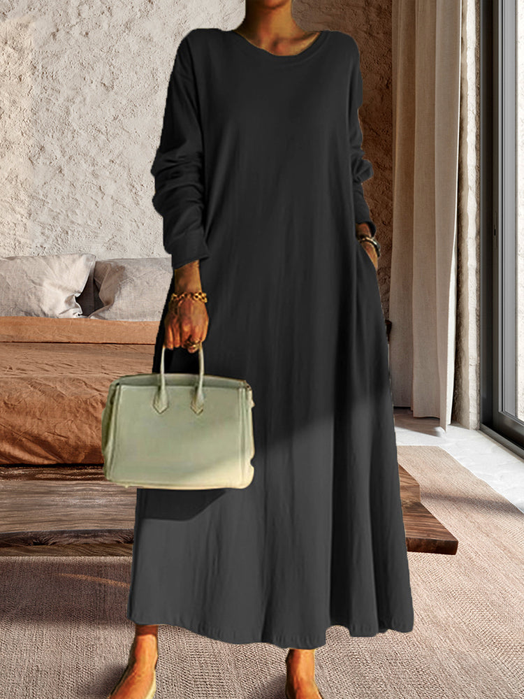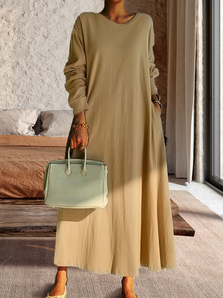 Describe-Patchwork Midi Dress Long Sleeve Crew Neck Dress