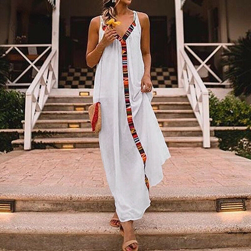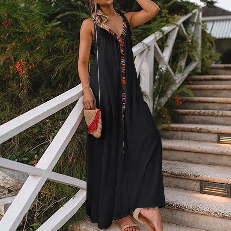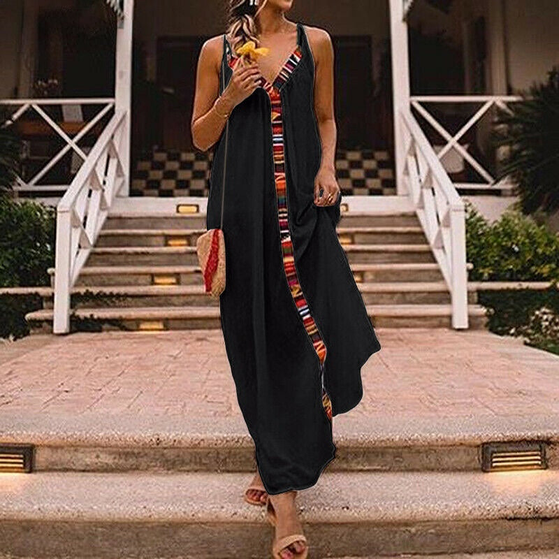 Sling V-Neck Sexy Resort Style Contrast Panel Dress