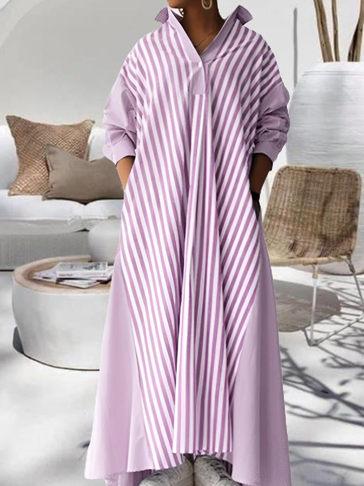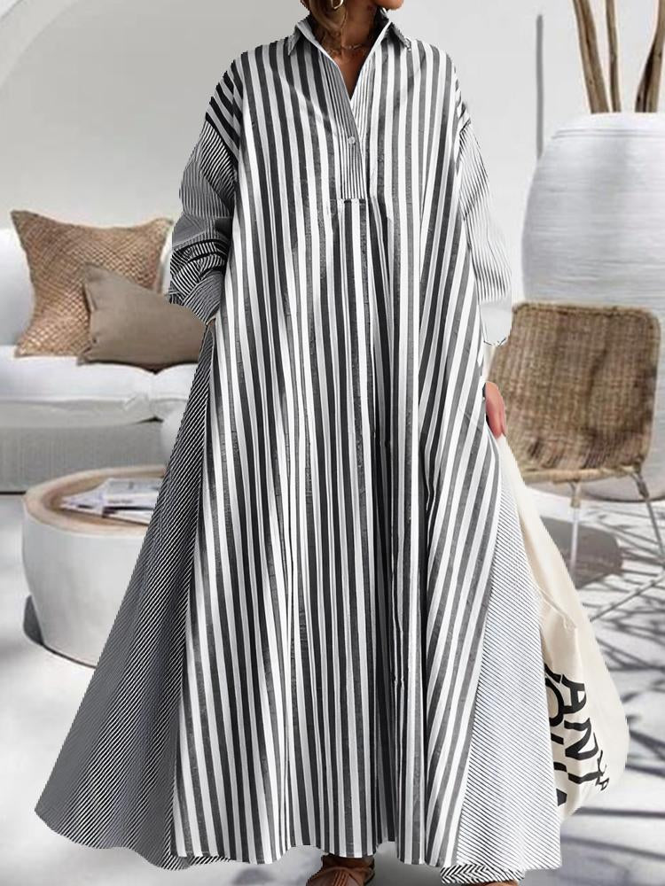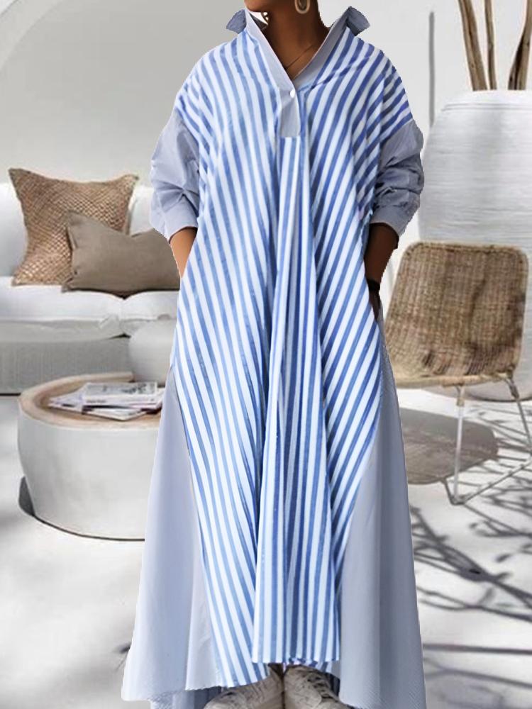 -Striped Skirt Long Collar Loose Cape Dress Shirt