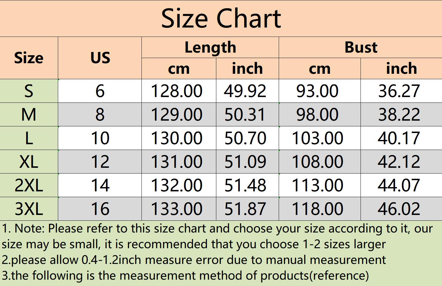 | 1. Note: Please refer to this size chart and choose your size according to it, our size may be small, it is recommended that you choose 1-2 sizes larger 2.please allow 0.4-1.2inch measure error due to manual measurement 3.the following is the measurement method of products(reference) | |||||