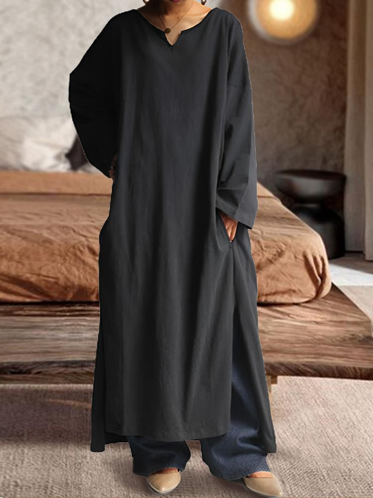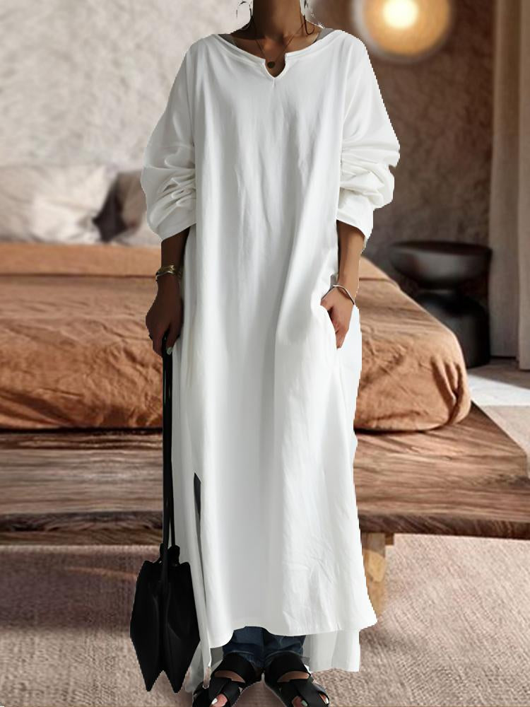 -White Loose-waisted Split Dress