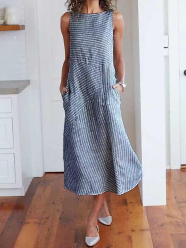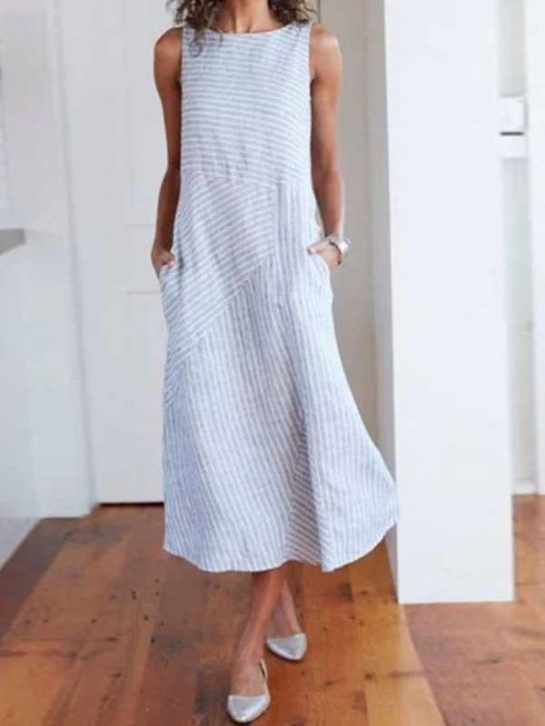 loose skirt sleeveless round neck cotton linen dress women