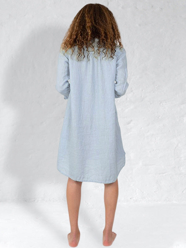 Women's Cotton Linen Striped Cozy Casual Shirt Dress