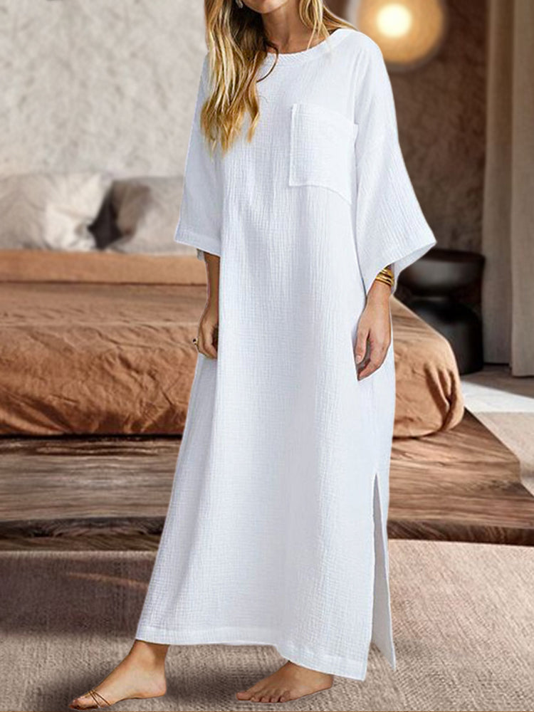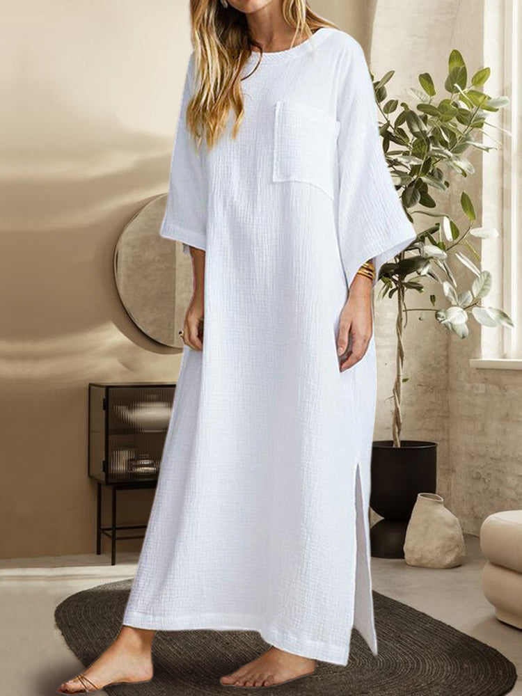 SocialShop Round Neck Slant Pocket Loose Midi Dress