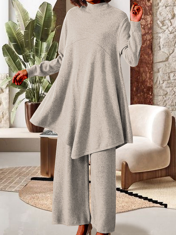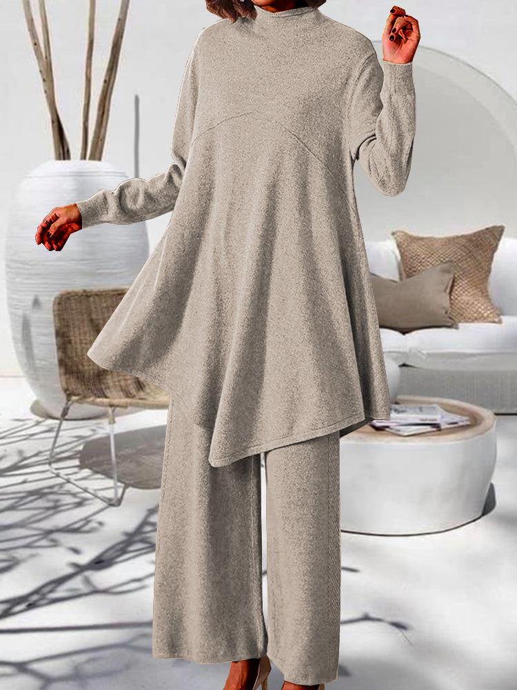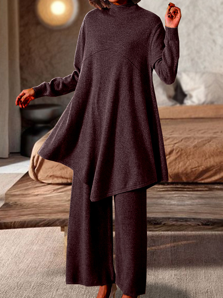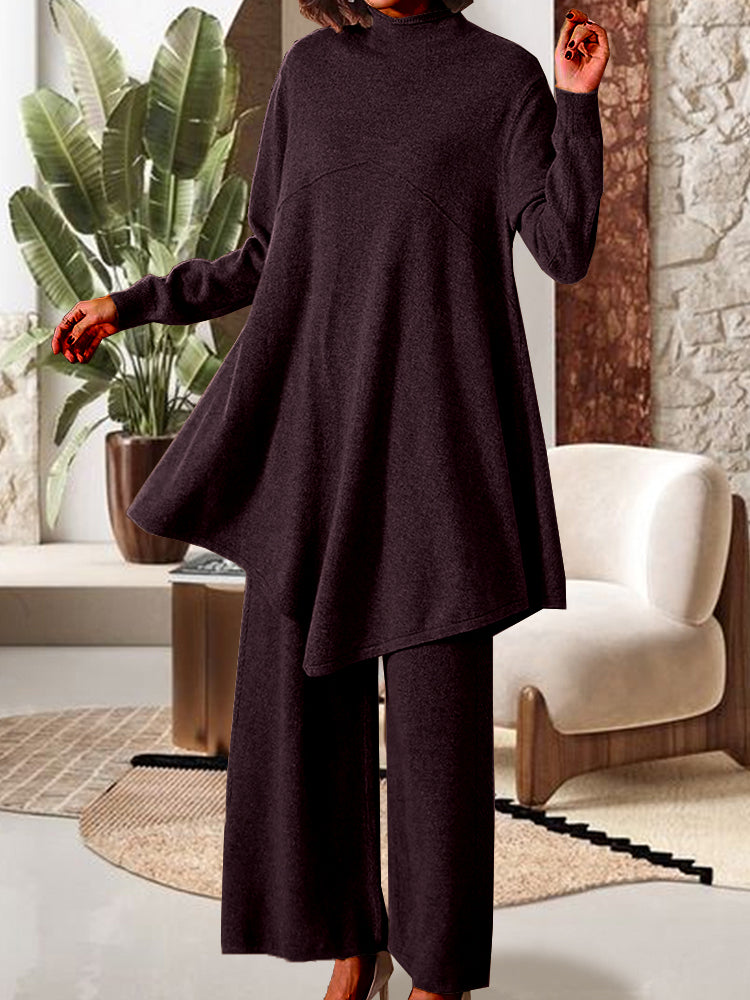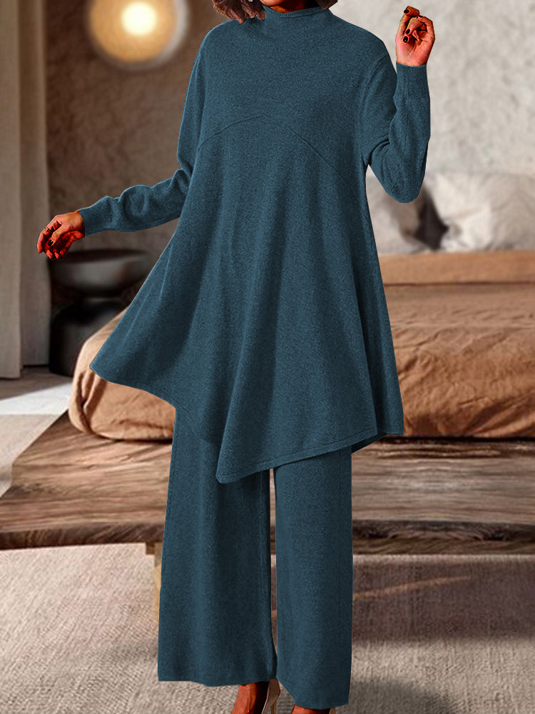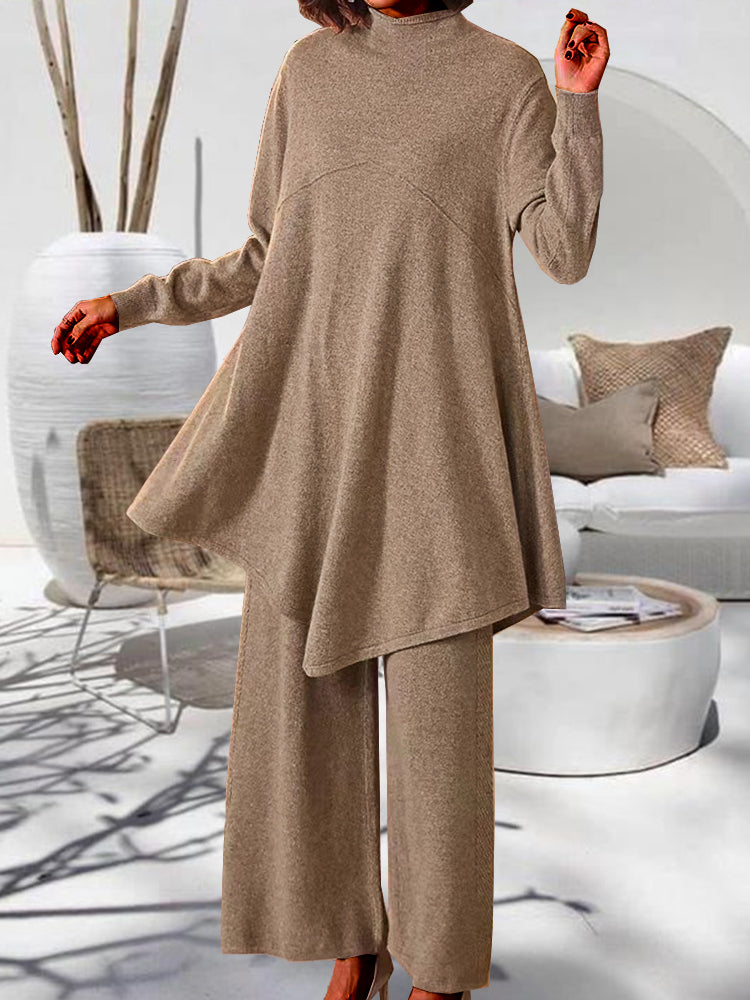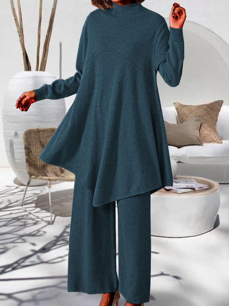 Describe-Irregular Beveled Loose Pullover Sweater Two-piece Summer Dress Simple Wide-leg Pants Suit
