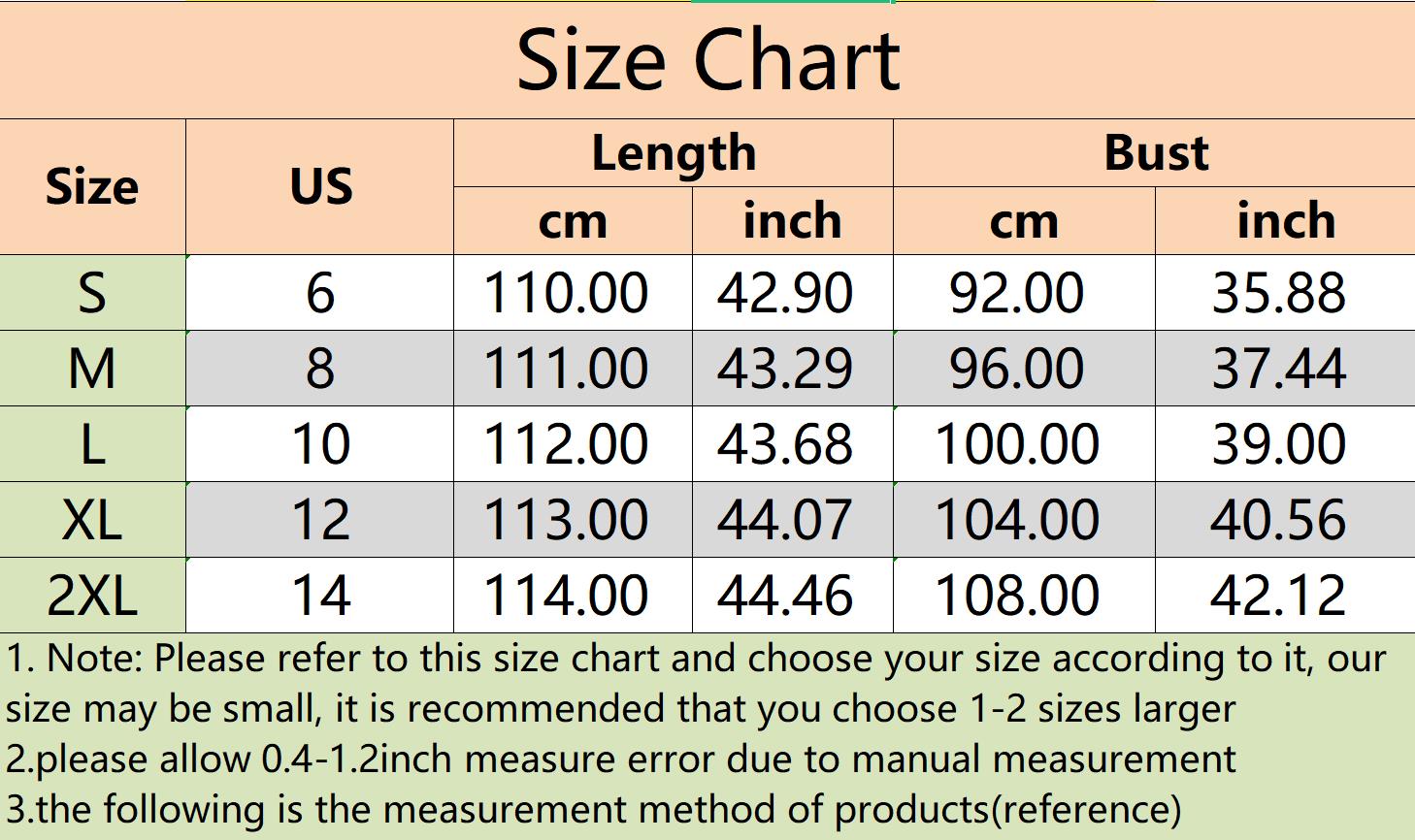 | 1. Note: Please refer to this size chart and choose your size according to it, our size may be small, it is recommended that you choose 1-2 sizes larger 2.please allow 0.4-1.2inch measure error due to manual measurement 3.the following is the measurement method of products(reference) | |||||