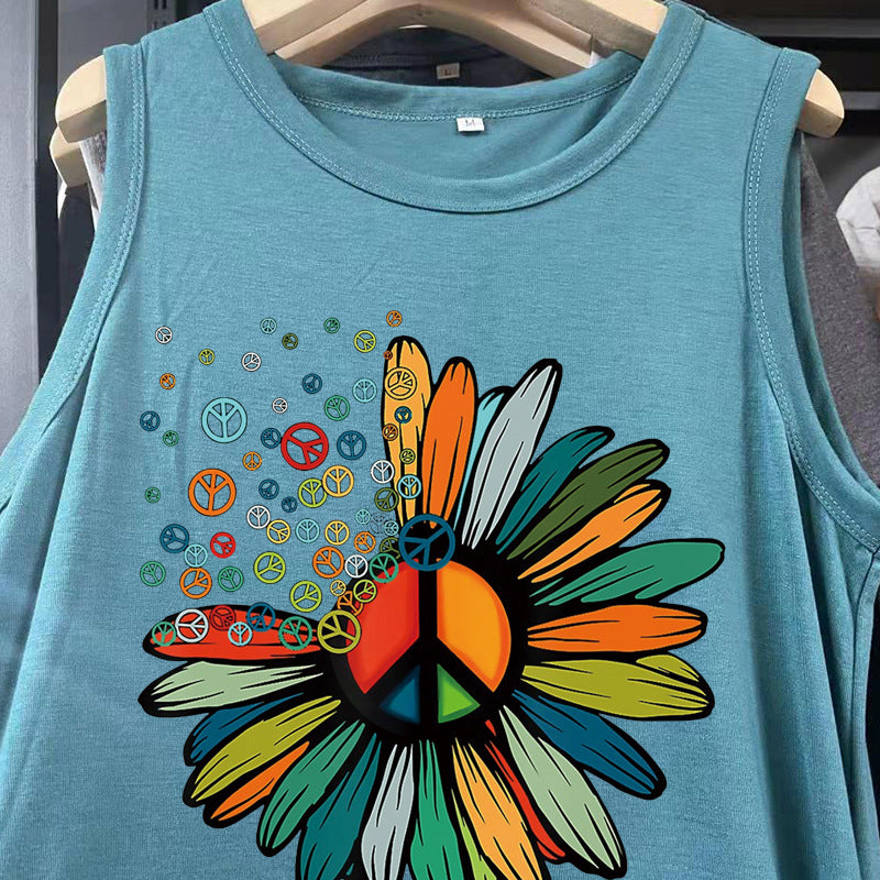 • Sleeveless Crewneck Maxi Dress Women's Hirrie soul Sunflower Print