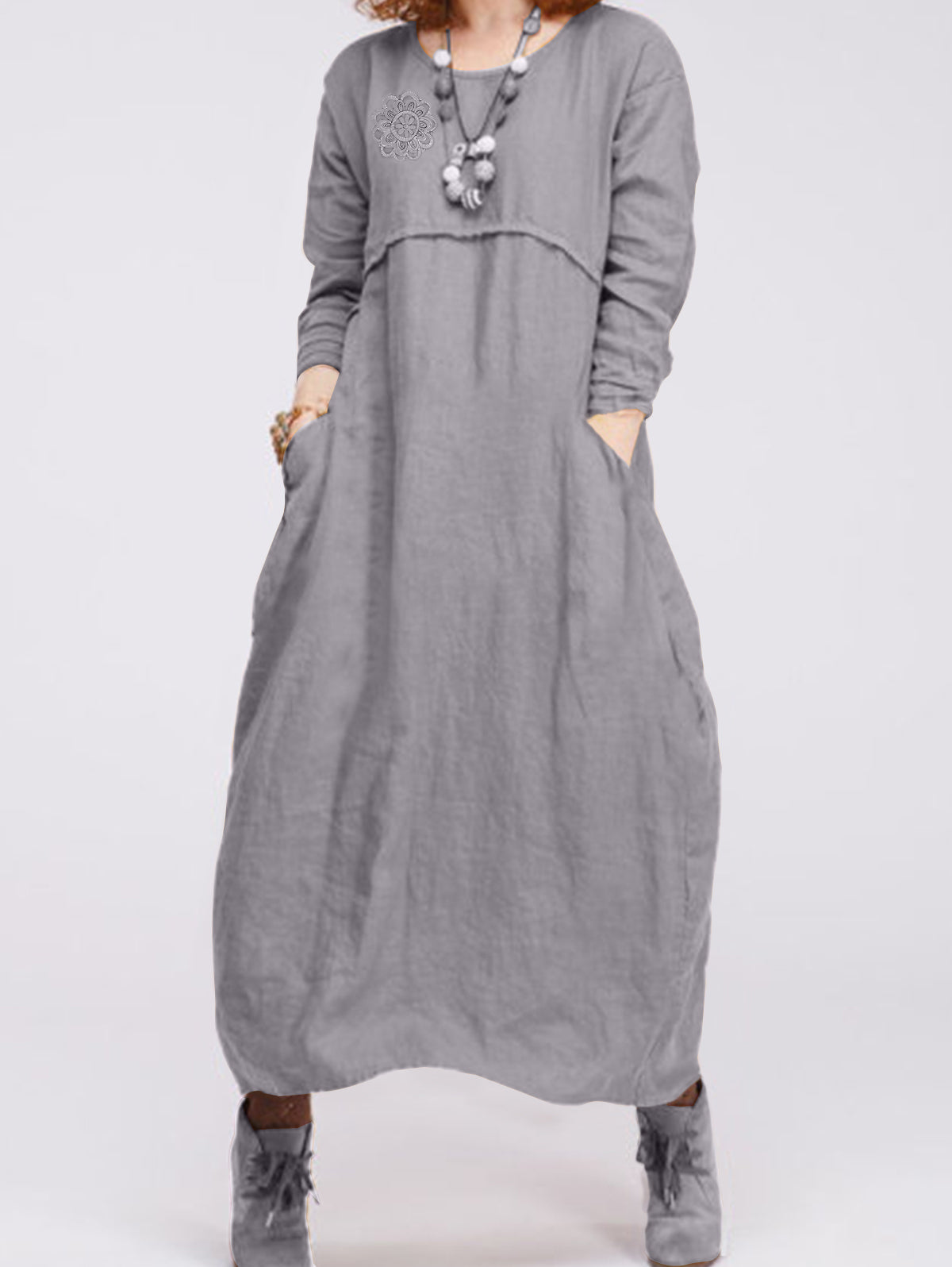 • SocialShop Embroidery Floral High-rise Pocket Front Splicing Dress