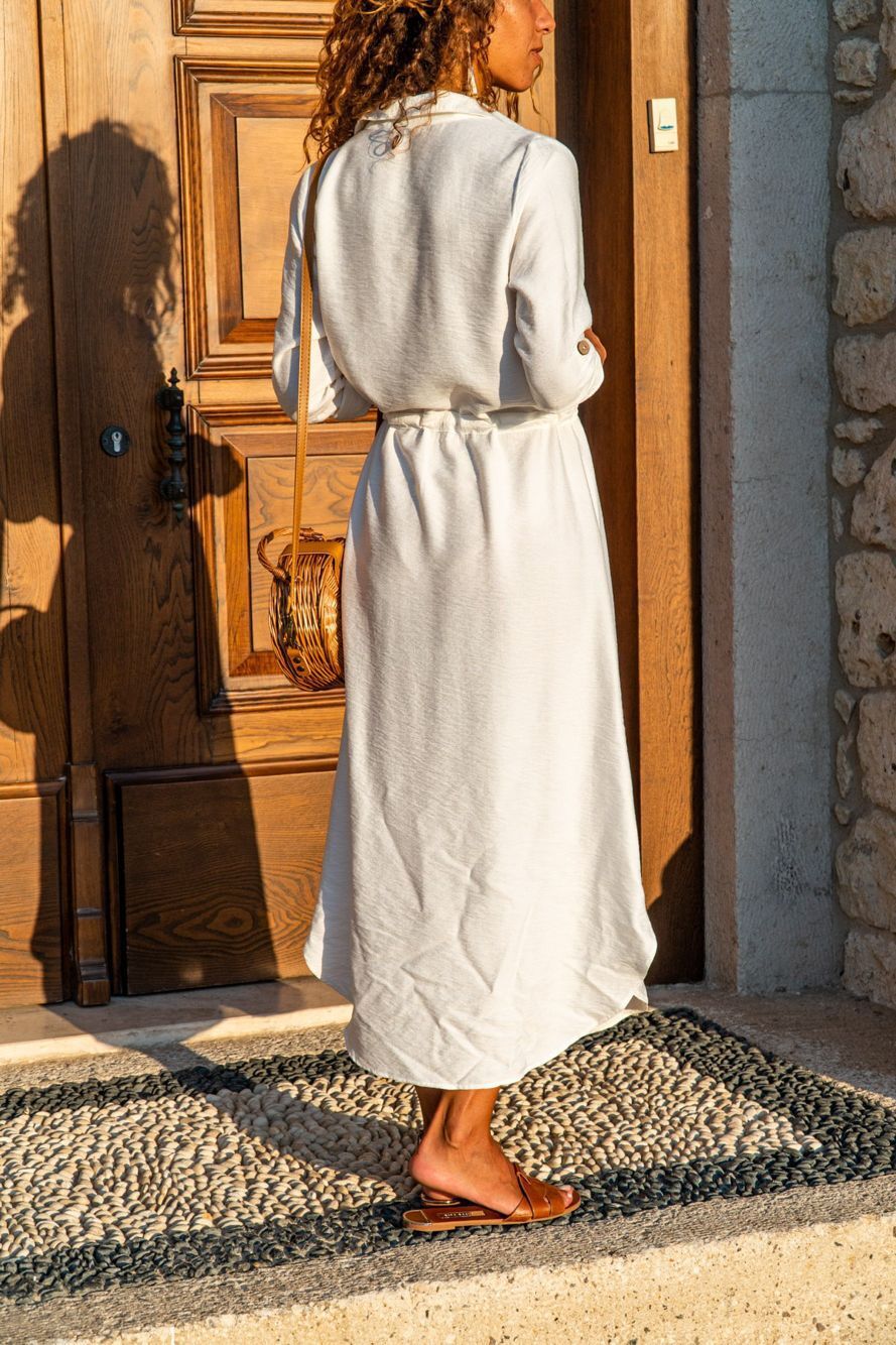Solid Color Loose Waist Midi Dress Cotton Linen Cotton Dress