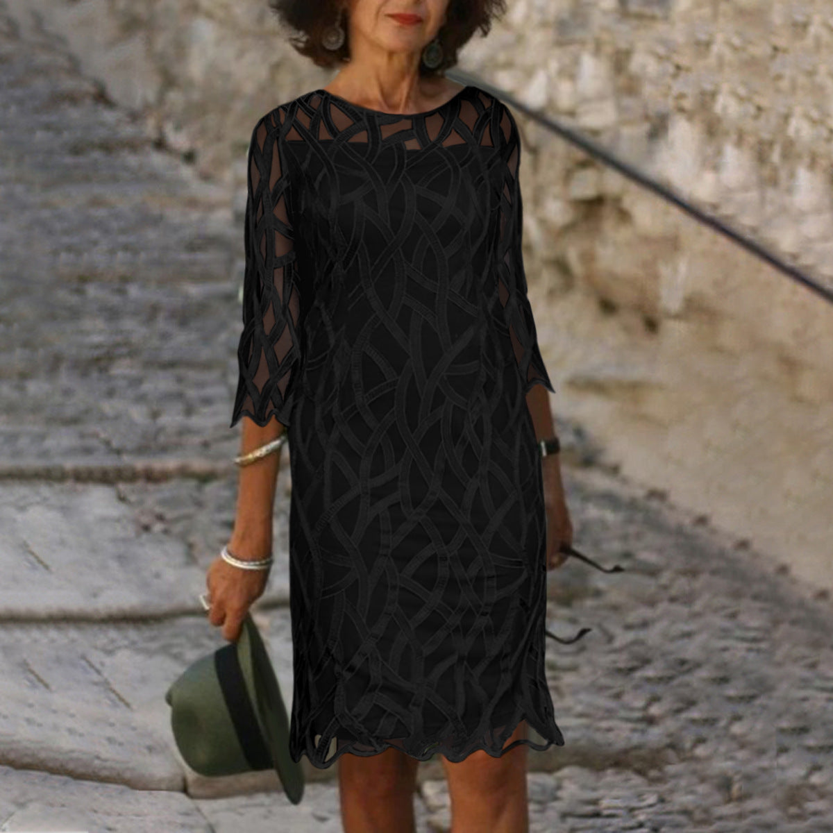 Lace Hollow Dress Summer High Waist V-Neck A-Line Skirt